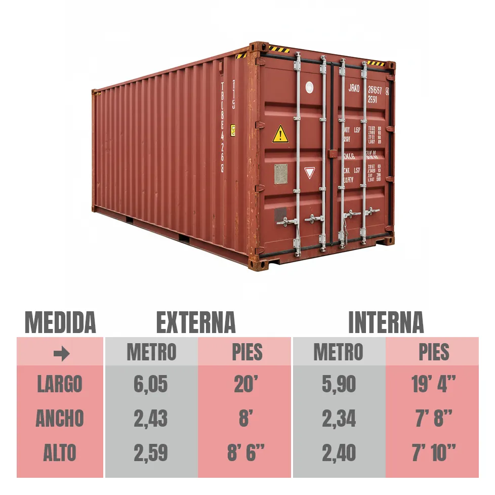 • Contenedor Dry Cargo 20’ x 8’ x 6’ (20 pies Standard)