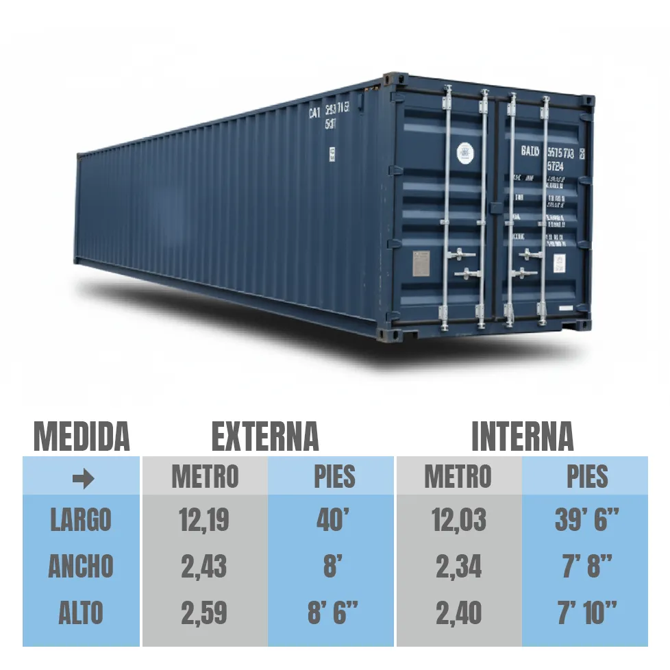 • Contenedor Dry Cargo 40’ x 8’ x 9,6’ (40 pies High Cube)